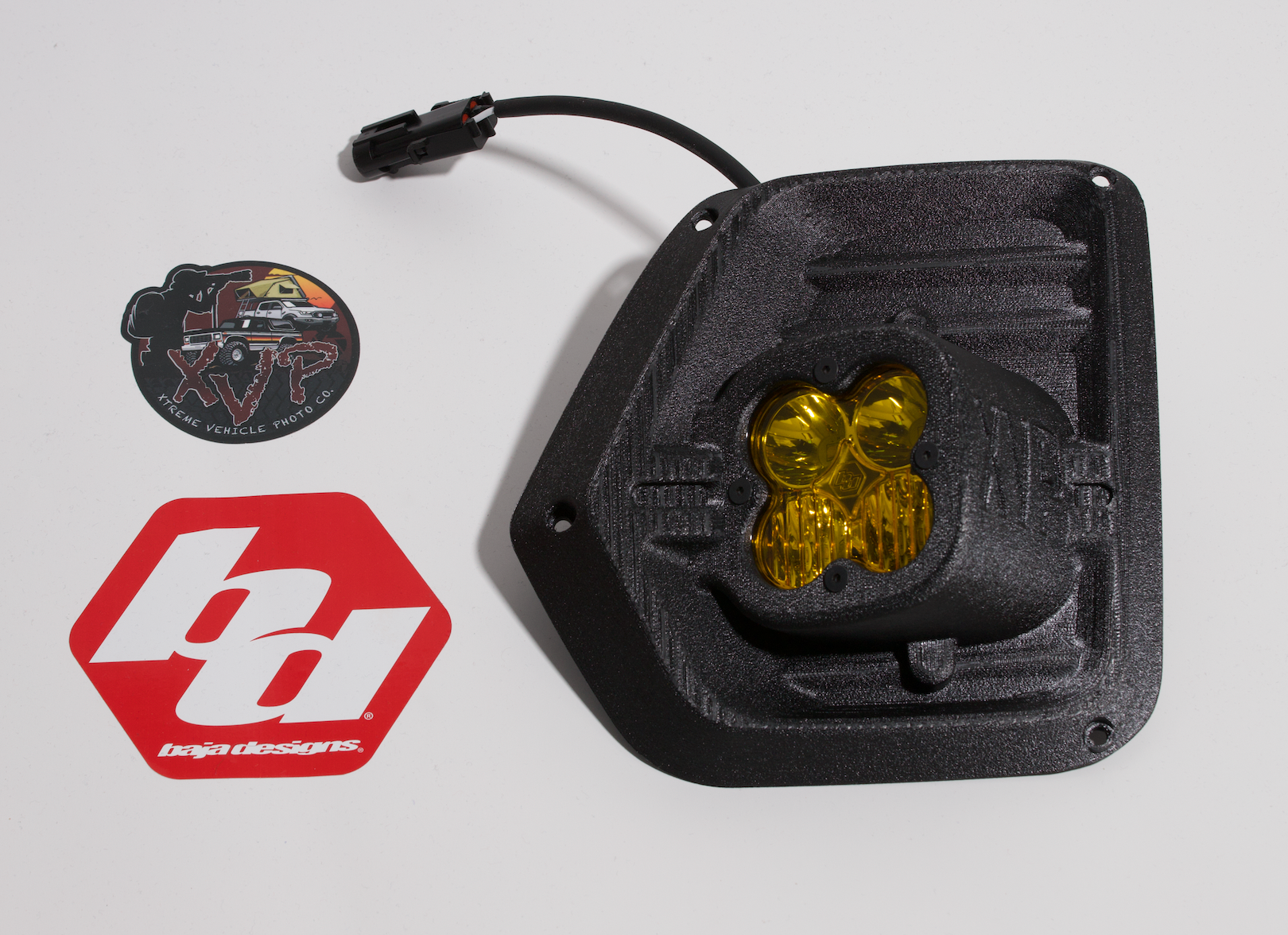 These mounts are made of CARBON FIBER infused Polycarbonate. These are custom, 3D printed mounts that will adapt Baja Designs Squadron Series LED lights to your Colorado of select models (seen above). This 3D printed material is rated for temperatures that can endure Utah's winter and down south to Arizona's summer days.